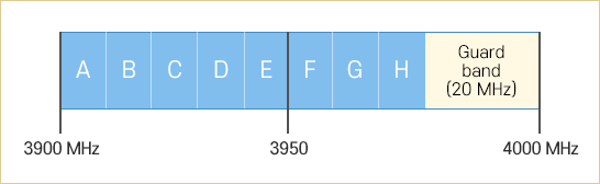 1) 3.9 GHz (80 MHz 할당, unpaired blocks of 10 MHz)